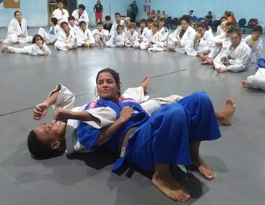 “Julia iniciou no judô aqui, treinando igual a vocês. Hoje, é medalhista em competições nacionais e internacionais, é a número 1 no ranking nacional, na categoria Sub-18. Está entre as três melhores do país na categoria Sub-21, com apenas 16 anos de idade”, frisou Ishimaru.
