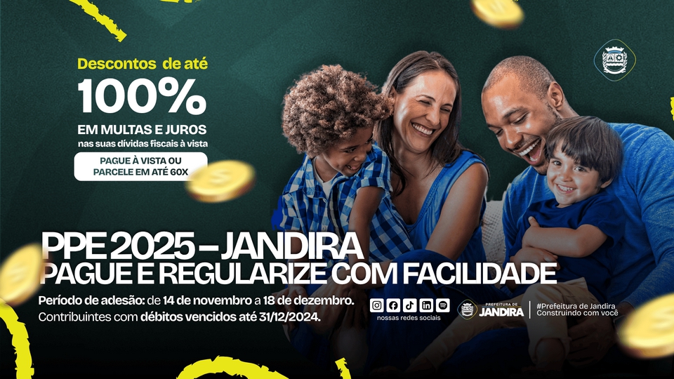 A Prefeitura de Jandira apresentou, no dia 6 de novembro de 2025, o Projeto de Lei Complementar que institui o 3° Programa de Parcelamento Especial (PPE) no município. O documento, identificado como PLC 1111/2025, foi oficialmente assinado pelo prefeito Henri Hajime Sato e encaminhado para tramitação, marcando mais um passo importante na política municipal de conciliação fiscal.