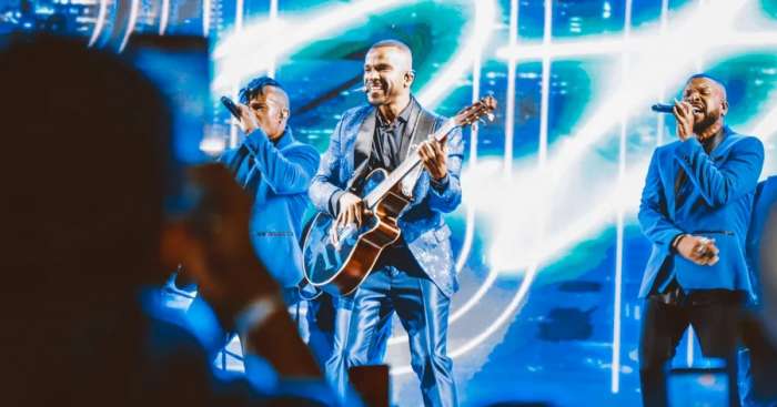 Antes da performance de Alexandre Pires, o grupo Mulekagem realizou a abertura do Natal Encantado, apresentando também os seus maiores sucessos.