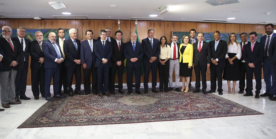 O presidente da República Luiz Inácio Lula da Silva recebeu nesta quarta-feira (11) no Palácio do Planalto um grupo de parlamentares, o presidente da Câmara dos Deputados, Arthur Lira (PP), e o primeiro vice-presidente do Senado, Veneziano Vital do Rego (MDB), que fizeram a entrega simbólica do decreto de intervenção na área da segurança pública no Distrito Federal.