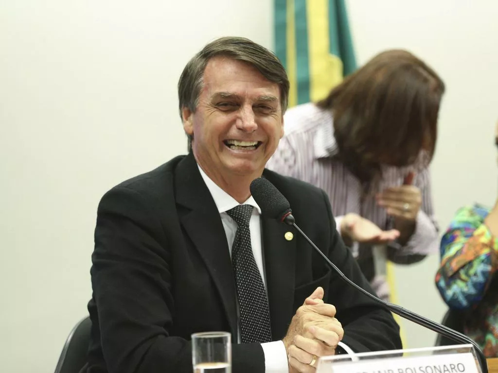 O presidente Jair Bolsonaro sorri em sessão do Conselho de Ética da Câmara em 2018, que avaliou se o então deputado havia quebrado o decoro ao homenagear Ustra durante o impeachment da ex-presidenta Dilma Rousseff